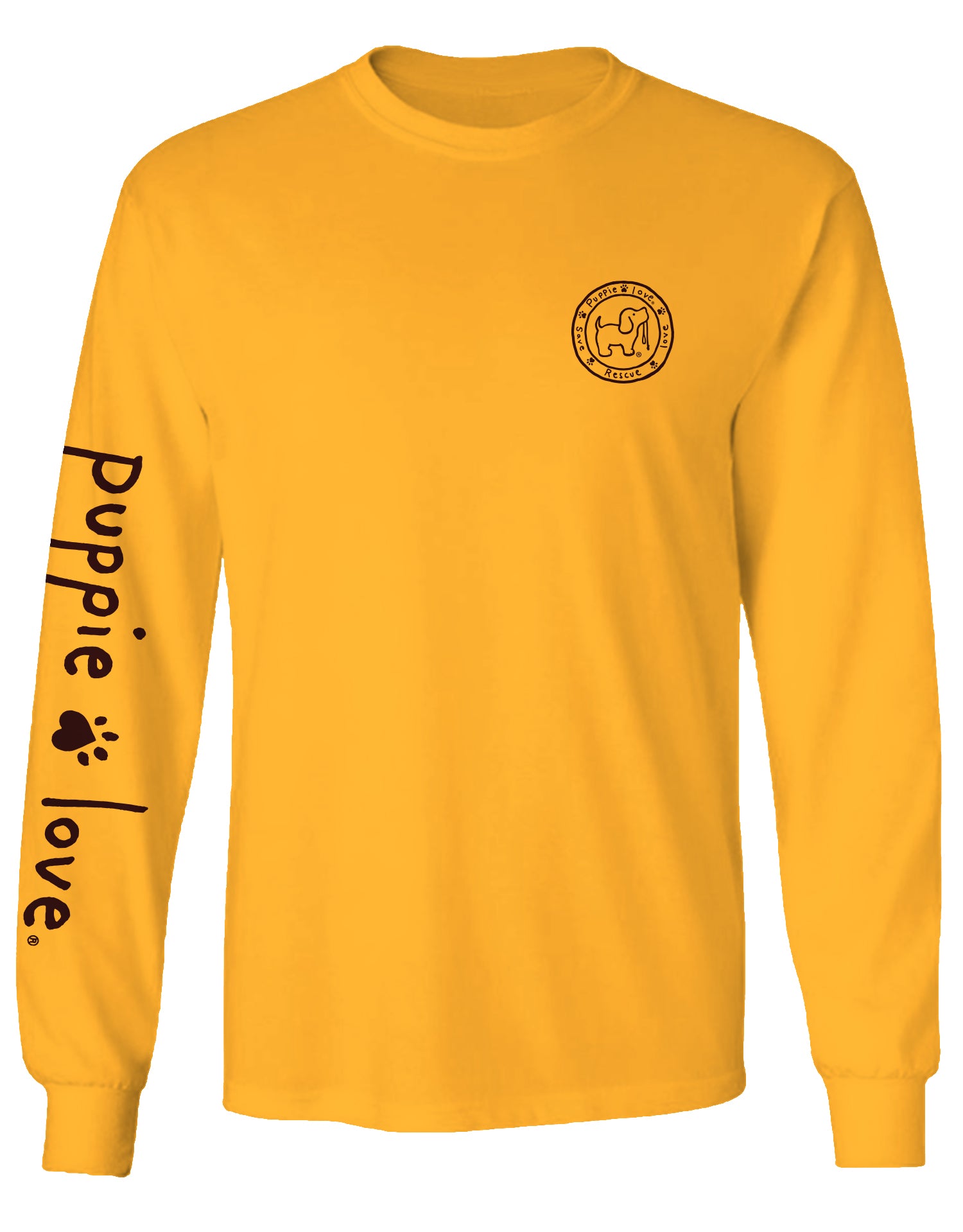 - Back print design with small left chest Puppie Love logo